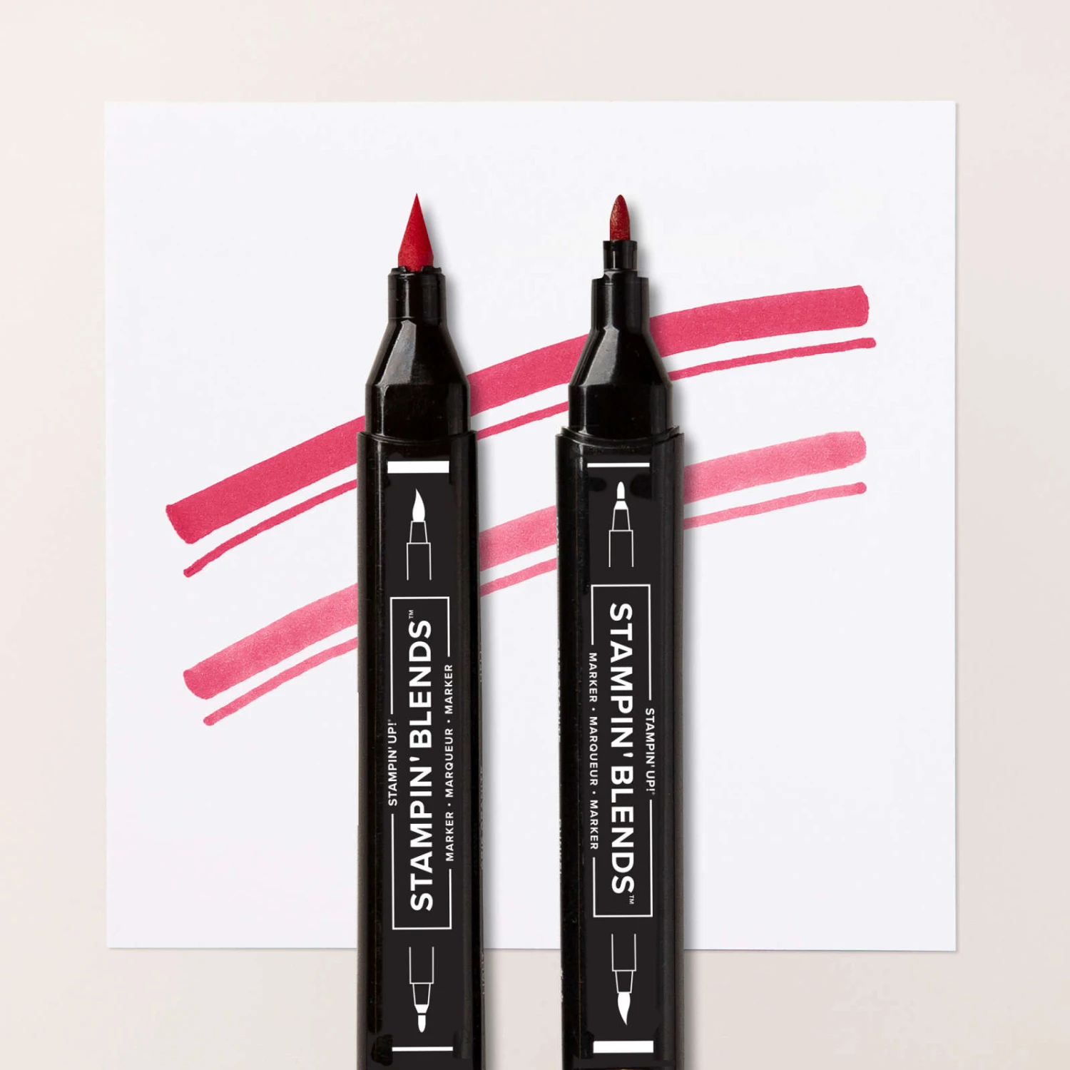 Mit Stampin’ Blends Alkoholmarkern gestalten Sie beim Kolorieren dreidimensional wirkende Licht- und Schatteneffekte. Der Stampin’ Blends Kombipack in Glutrot enthält zwei hochwertige Alkoholmarker – einen dunklen und einen hellen Ton der Farbe Glutrot – zum Gestalten beeindruckender Farbverläufe und -übergänge. Verwenden Sie diese Marker zusammen mit dem Stampin’ Blends Farbaufheller für zusätzliche Möglichkeiten beim Gestalten von Farbverläufen.